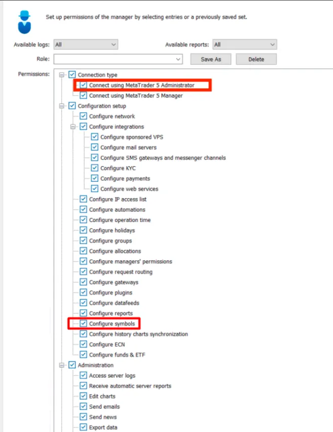 | Permissions in MT4 | Permissions in MT5 |